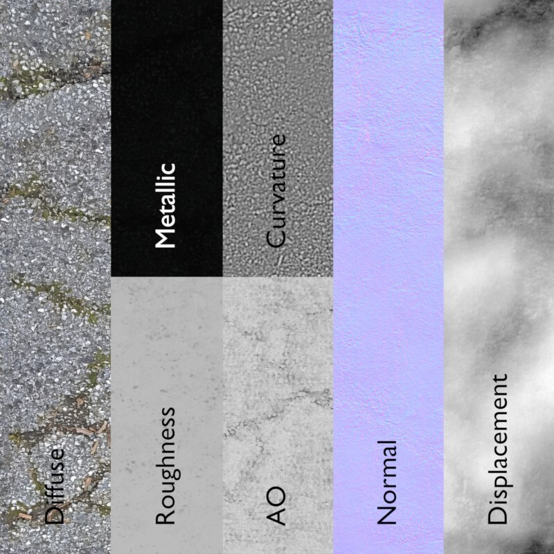 - Material Type : Asphalt cracked texture with PBR parameters.