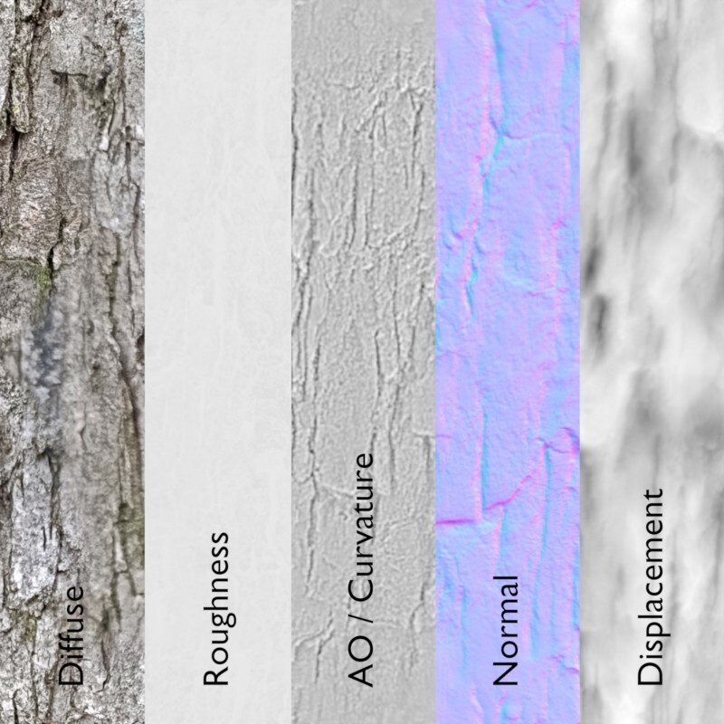 - Material Type : Seamless bark texture with PBR parameters.