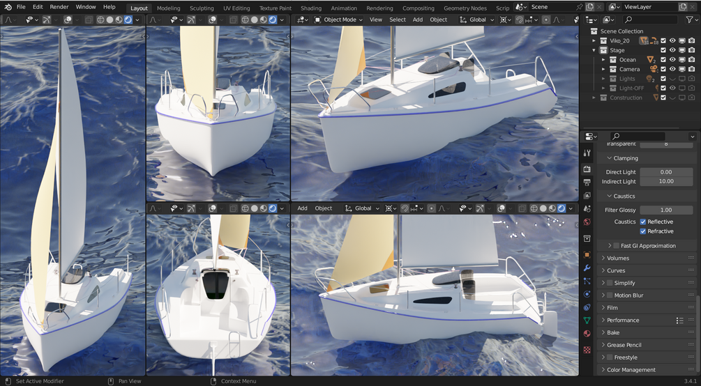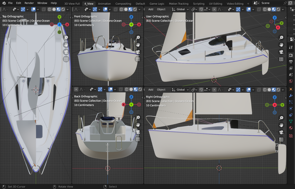 This is the Viko 20, a small boat with interesting features, it was the first boat model I made with Blender.